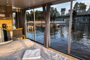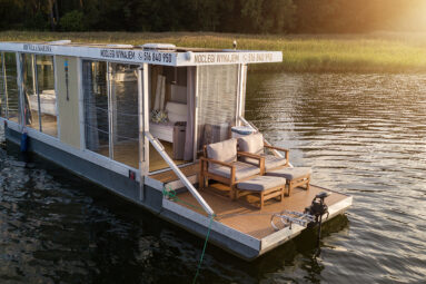 Tu natura spotyka się z komfortem. Houseboat Villa Marina to nowoczesny, ekologiczny i w pełni wyposażony domek na wodzie, położony w sercu Augustowa. Poranna kawa z widokiem na jezioro, zachód słońca przy kieliszku wina albo wędka zarzucona prosto z sypialni – tu wszystko smakuje lepiej.