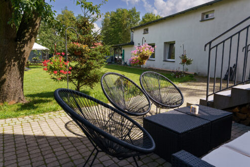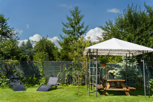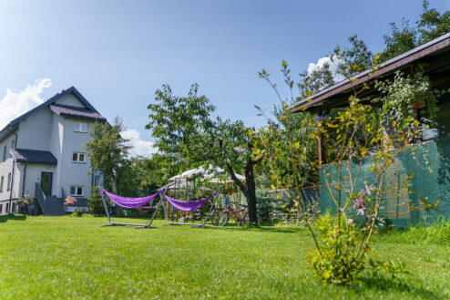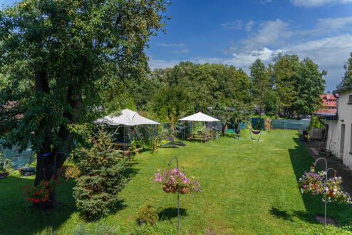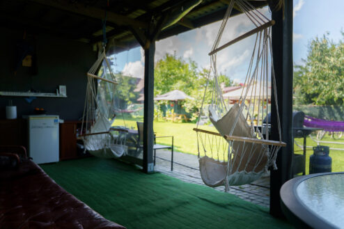To miejsce gdzie natura spotyka się z błogim odpoczynkiem. Wśród zagospodarowanej zieleni czekają na Ciebie leżaki, hamaki, altanki, grill i wygodne fotele- idealne na leniwe popołudnia albo wieczorne rozmowy przy ognisku. Dla tych, którzy wolą wodne klimaty - jest balia z jacuzzi – zapewniająca doskonały reset po całym dniu wrażeń. To przestrzeń, w której można zwolnić i złapać oddech.