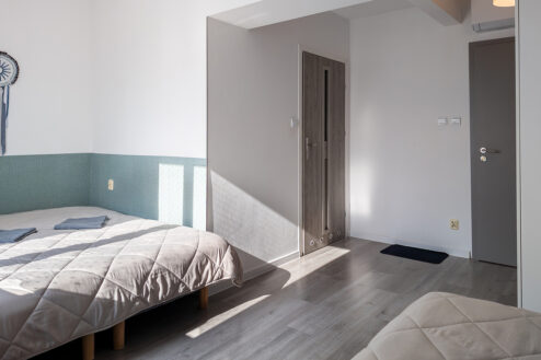 Pokój rodzinny inspirowany jest dzikim jeziorem Kalejty – pełnym zakamarków, meandrów i tajemniczych zaułków. Wygodna przestrzeń o powierzchni 17 m2 z 1 łóżkiem małżeńskim i 1 pojedynczym, ewentualnie pokój można zaaranżować tak, aby były w nim 3 łóżka pojedyncze. Idealny wybór, jeśli chcesz poczuć odrobinę dzikości.
