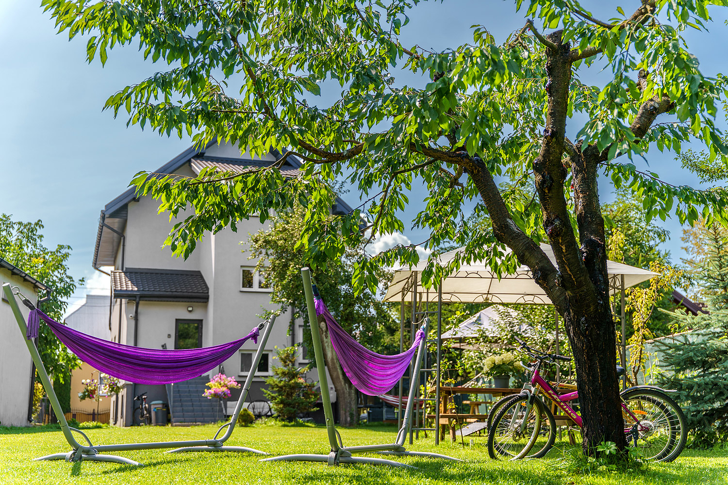 To miejsce gdzie natura spotyka się z błogim odpoczynkiem. Wśród zagospodarowanej zieleni czekają na Ciebie leżaki, hamaki, altanki, grill i wygodne fotele- idealne na leniwe popołudnia albo wieczorne rozmowy przy ognisku. Dla tych, którzy wolą wodne klimaty - jest balia z jacuzzi – zapewniająca doskonały reset po całym dniu wrażeń. To przestrzeń, w której można zwolnić i złapać oddech.