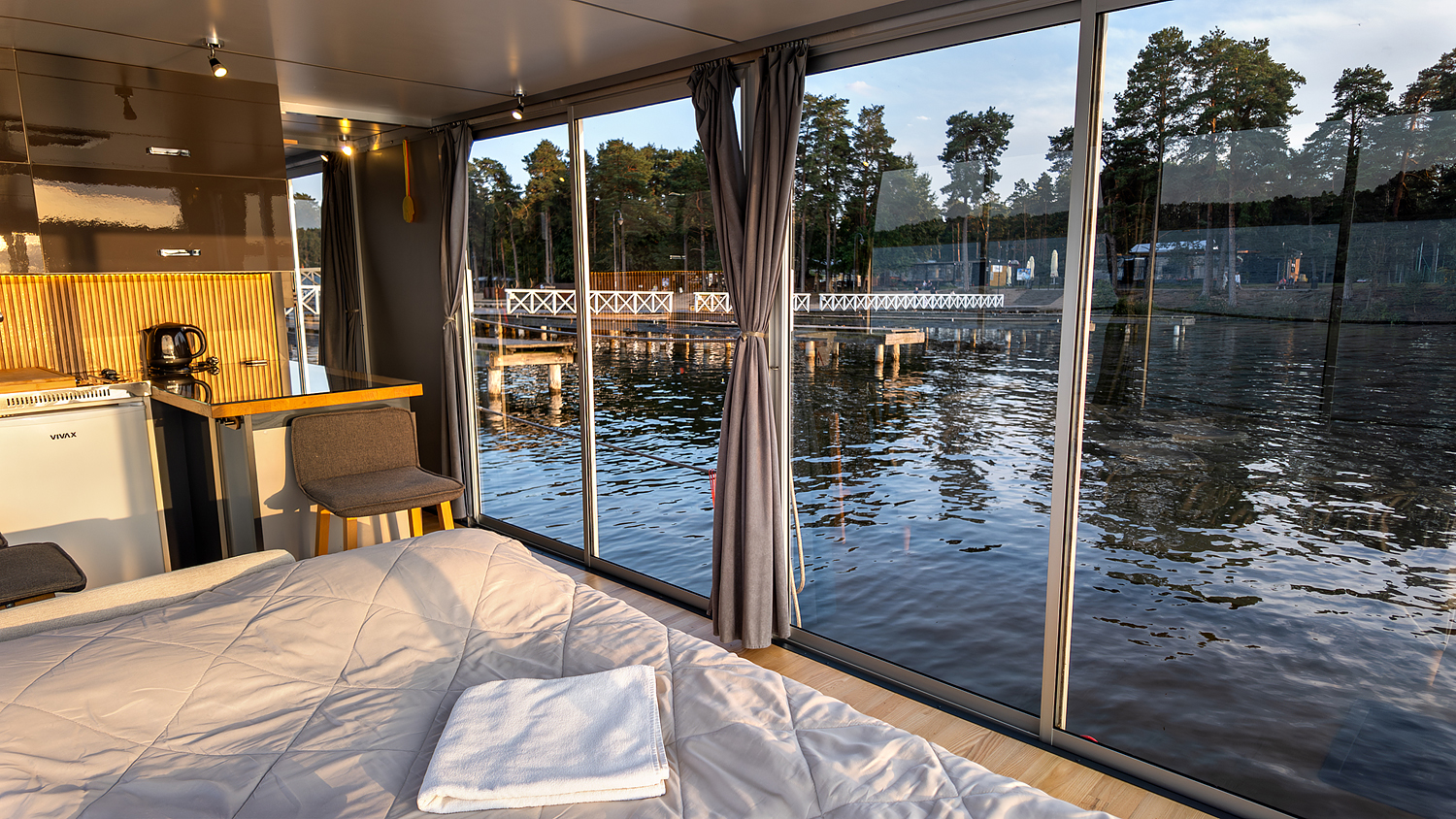 Tu natura spotyka się z komfortem. Houseboat Villa Marina to nowoczesny, ekologiczny i w pełni wyposażony domek na wodzie, położony w sercu Augustowa. Poranna kawa z widokiem na jezioro, zachód słońca przy kieliszku wina albo wędka zarzucona prosto z sypialni – tu wszystko smakuje lepiej.